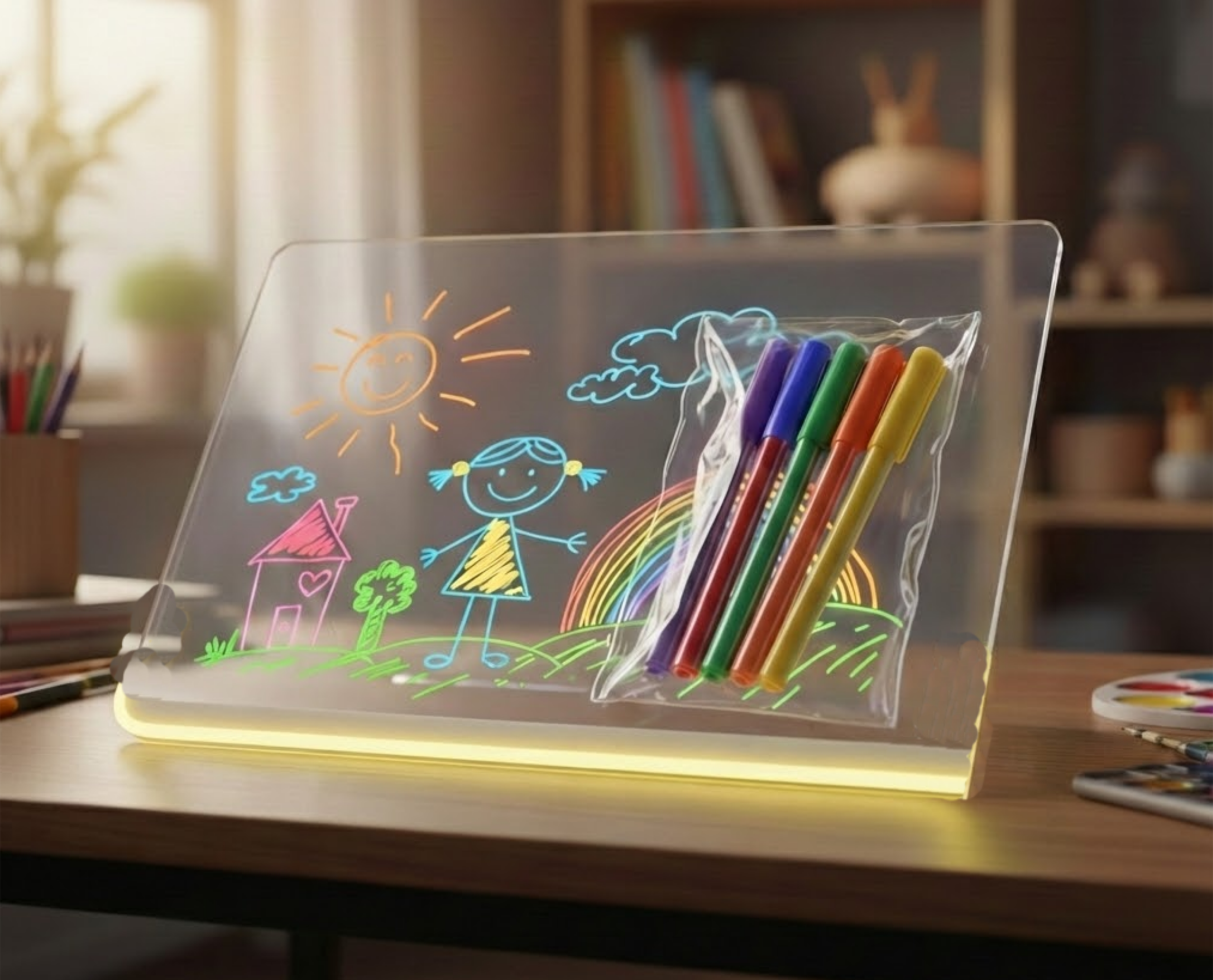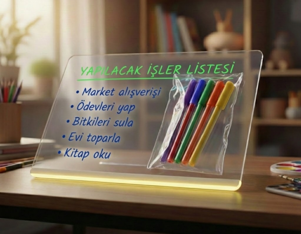 Sıradan kağıtları bir kenara bırakın. Şeffaf yüzeyi, yumuşak LED ışıkları ve canlı renkleriyle bu ışıklı tahta, odanızın en sevilen köşesi olmaya aday.
